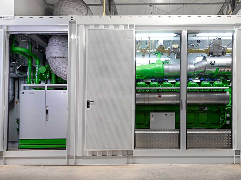La cogeneración es la producción simultánea de energía eléctrica y térmica en un sistema solar. Esta cogeneración es muy adecuada para el uso en invernaderos con altos consumos energéticos. La solución compacta y modular de Hortilife ofrece unidades de cogeneración que garantizan la producción de electricidad, energía térmica y CO₂.
